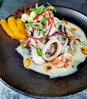 Nachdem er vor fünf Jahren mit dem Restaurant Nazca 21 gestartet ist und eine zweite Filiale in San Carlos eröffnet hat, startete Chefkoch Aristóteles Breña in diesem Jahr mit einer dritten Filiale im Ocean Mall in Costa del Este, deren Karte eine der Marken der peruanischen Küche bewahrt: die Zubereitung von Gerichten auf der Basis von Meeresfrüchten. Unser Besuch begann mit einem Pisco Sour als Appetizer und einer vom Haus empfohlenen Vorspeise: der imperialen Meeresfruchtgelee, einer der am meisten nachgefragten Delikatessen, zubereitet mit Fischchicharrón und einer Mischung von Meeresfrüchten, die mit frittierten Yuccas serviert und in Kreolsauce gebadet wird. Eines der ersten Dinge, die wir gemacht haben, war, an unser Publikum zu denken. Für das Publikum in Panama haben wir viele Aromen angepasst und einige Saucen und Gewürze abgemildert', erklärt Breña, der ausführt, dass ein weiteres der am meisten nachgefragten Gerichte der Karte zweifellos das traditionelle Ceviche ist, basierend auf frischem Fisch und dessen Zubereitung im Zitronensaft mit roter Zwiebel und einer fairen Dosis an Schärfe erfolgt. Ein weiteres Gericht, das vom Koch präsentiert wurde, war der berühmte Holzkohlen-Oktopus des Hauses, den wir mit einem Pisco Sour de Tamarindo probierten, einer der erneuerten Angebote, die von dieser Bar Nazca 21 zubereitet wurden. Chefkoch Breña erinnert daran, dass er in seinen mehr als 20 Jahren Erfahrung in der Küche alle Posten durchlaufen hat, die das Restaurantgeschäft ausmachen, und ausgehend von der Zubereitung von Meeresfrüchten als seine Spezialität hat er sich darauf konzentriert, die lokalen Zutaten zu studieren, um eine Speisekarte zu erstellen, die die Fusion von Küchen beinhaltet. In derselben Linie teilte der Koch mit uns eine neue Kreation: Garnelengratin in Fächerschalen gegrillt und mit Patacones serviert, damit der Esser sie als Montaditos probieren kann. Als Hauptgang wurde Reis nordischer Art serviert: grüner Reis mit einer Meeresfruchtmischung, die den Geschmack von Muscheln hervorhebt, im Kontrast zur Creolsauce und der Textur der Garnelen. Eine weitere der Flaggenwetten von Nazca 21, laut dem Besitzer, sind die Inka-Garnelen, zubereitet mit einer Basis aus Paprikareduktion mit Weißwein und einem Hauch von Cognac, übergossen mit einer Portreduktion und serviert auf einem Bett aus Kartoffelpüree. Der Koch Breña, der im vergangenen März im Restaurant Krave in Trinidad und Tobago Anerkennung erhielt, versichert, dass die Frische der Speisen das Wichtigste ist und erklärt, dass peruanische Zitronen derzeit importiert werden, einer der grundlegenden Zutaten der Gastronomie, auf die er spezialisiert ist. Zum Abschluss empfahl der Koch, den Maracuja-Kuchen des Hauses zu probieren, und schloss mit einem goldenen Verschluss, der das Versprechen, den Besuch zu wiederholen, besiegelte.