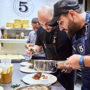 « La cuisine argentine est une cuisine sans prétention, de très peu d'ingrédients et d'assaisonnements, cependant, cette simplicité s'est renversée dans certains plats. D'autres ingrédients servent d'inspiration pour créer des fusions de plats. Et certainement dans mon quotidien en préparant et en mangeant de la viande, c'est uniquement avec du sel. J'aime vraiment rôtir, cuisiner tout sur le grill. À 5inco, nous avons quelques plats tels que les empanadas argentines, farcies d'entrailles ; le provolone, et différents morceaux au grill. »